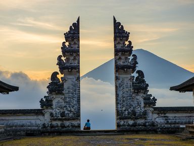 9:30–11:00 — храм Пура Лемпуянг. Один из древнейших храмов острова. Мы поднимемся к знаменитым «Воротам в небо» с видом на вулкан Агунг